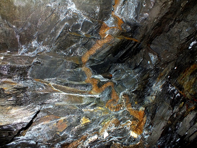 "schlangenförmige" Pyritmineralisation im Schiefer- rechtes Bild