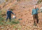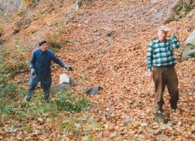 Auch im Bereich Geotopschutz ist unsere Fachgruppe aktiv. z.B.: Hans Weigel (links) und Herbert Breitrück (rechts) beim Freischneiden eines Geotops im Landkreis. (linkes Bild)