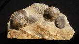 Newaagia noetlingi (Pseudo- Auster) und Muscheln, Trias, Rohr (links)