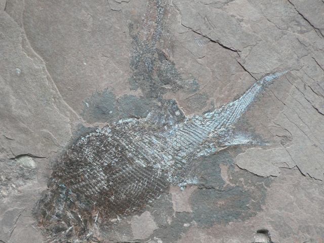 Paramblypterus sp. (Schmelzschuppenfisch), Perm, Tabarz (links)